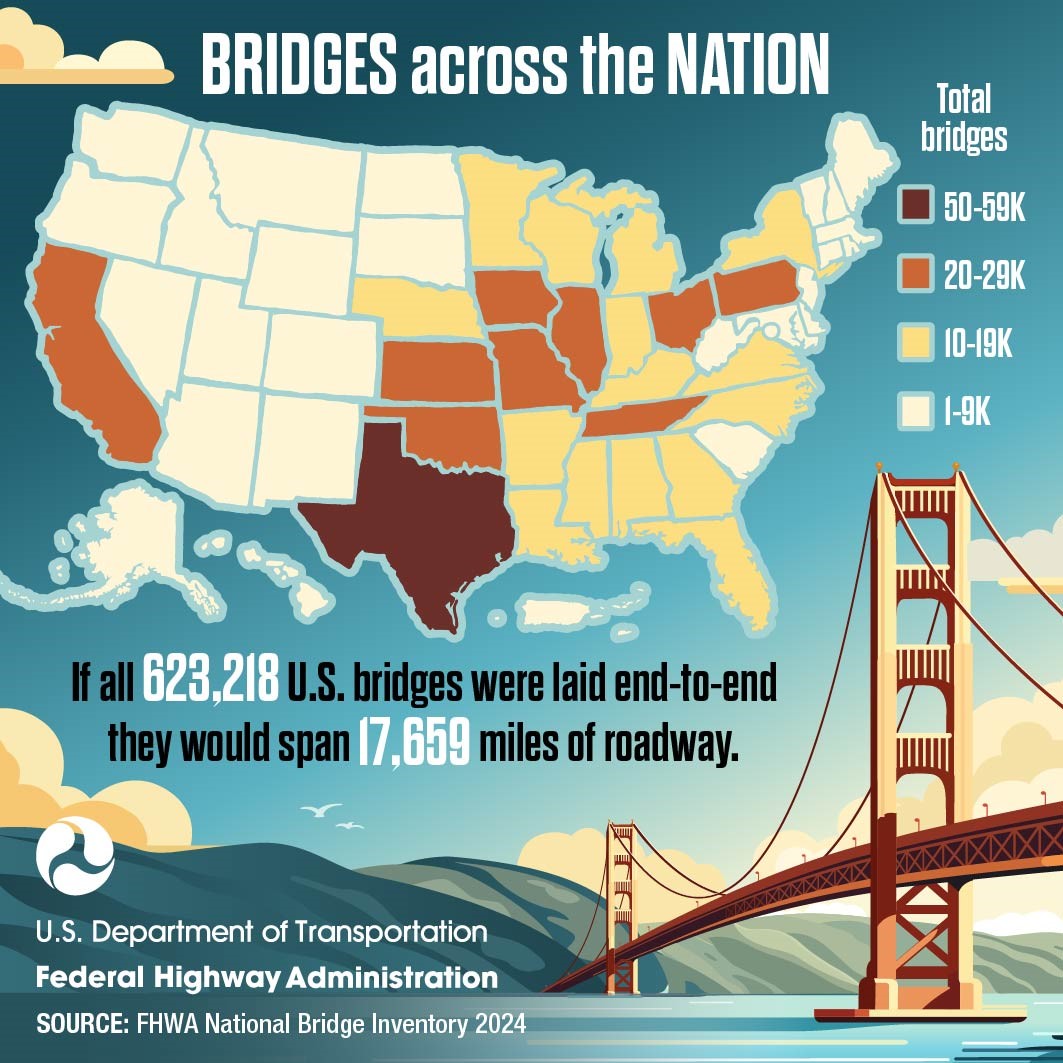 Did you know the builders of America’s 623,218 bridges are some of the nicest people? It’s true, they’re “civil” engineers. Learn more about the span of FHWA’s support of bridges at Bridges & Structures – Federal Highway Administration
